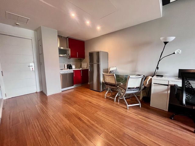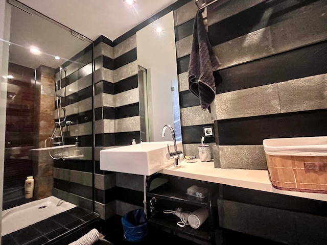 Nada más entrar, destaca por su luminosidad al estar orientada al sur. El salón-comedor, se abre a una terraza con vistas a los tejados de Madrid y a la piscina, ideal para disfrutar del sol durante todo el día y crear un espacio exterior acogedor. La cocina, integrada y equipada con electrodomésticos de primeras marcas, aporta funcionalidad y un toque sofisticado al conjunto.