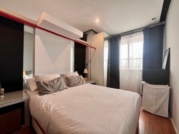El dormitorio anexo, con dos amplios armarios y una distribución que optimiza el espacio de almacenamiento.
