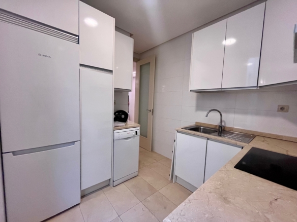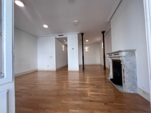 Esta coqueta vivienda se distribuye en un amplio salón-comedor en dos ambientes claramente diferenciados, con dos espectaculares balcones y mirador acristalado con vistas sobre la calle Argensola.