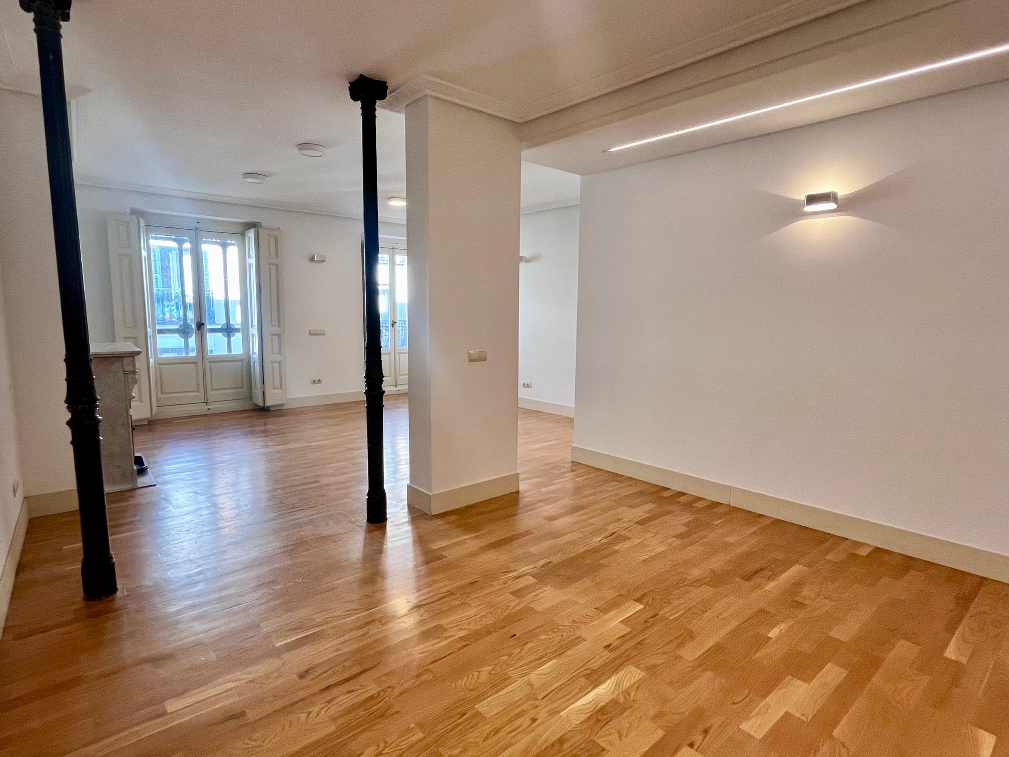 Con la esencia de las viviendas construidas a principios del S. XX, en un Edificio protegido por el Patrimonio Histórico Artístico de la Comunidad de Madrid, suelos de tarima de pino meli, techos altos, chimenea, columnas de hierro en el salón, mirador de cristal y balcones con contraventana de madera.