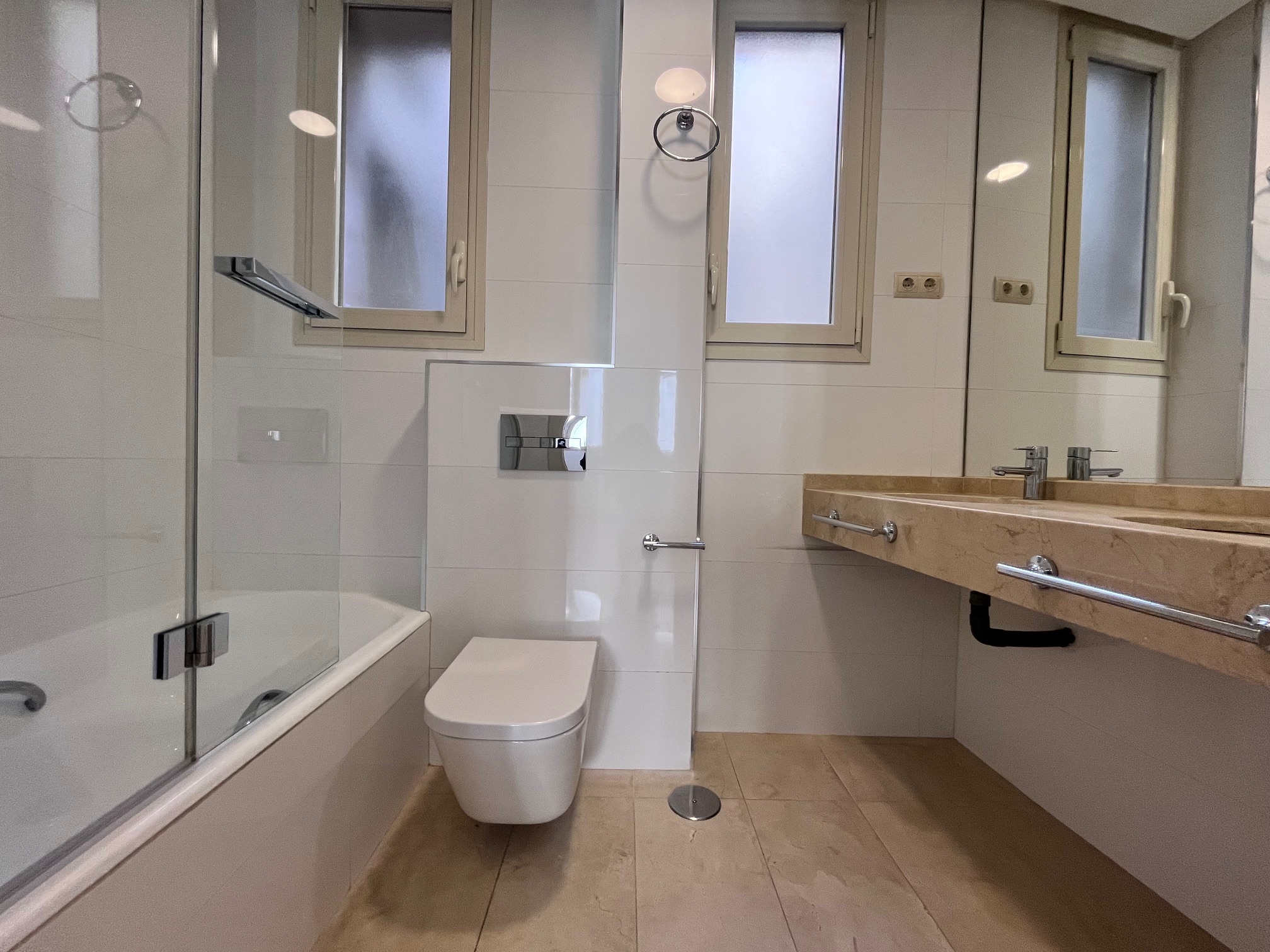 La parte de descanso cuenta con dos dormitorios dobles. Dormitorio principal con cuarto de baño en suite. Dos amplios cuartos de baño con materiales de primera calidad.