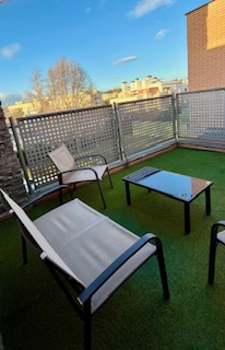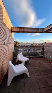 La tercera planta tiene una zona de estar, un dormitorio, un baño con ducha y dos terrazas. Parte de la terraza principal se ha cubierto para crear una zona de trabajo (actualmente se utiliza como estudio de pintura).